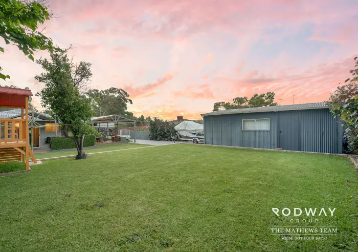 The Mathews Team is proud to present to the Kelmscott market – 94 Clifton Street, Kelmscott. This fantastic 4-bedroom, 1-bathroom home has been meticulously cared for and beautifully updated over the years. Sitting proudly on a huge 1000sqm block, it’s packed with features – from a stunning alfresco area and modern kitchen to multiple living zones, spacious lawns, and a large workshop – this one ticks all the boxes!